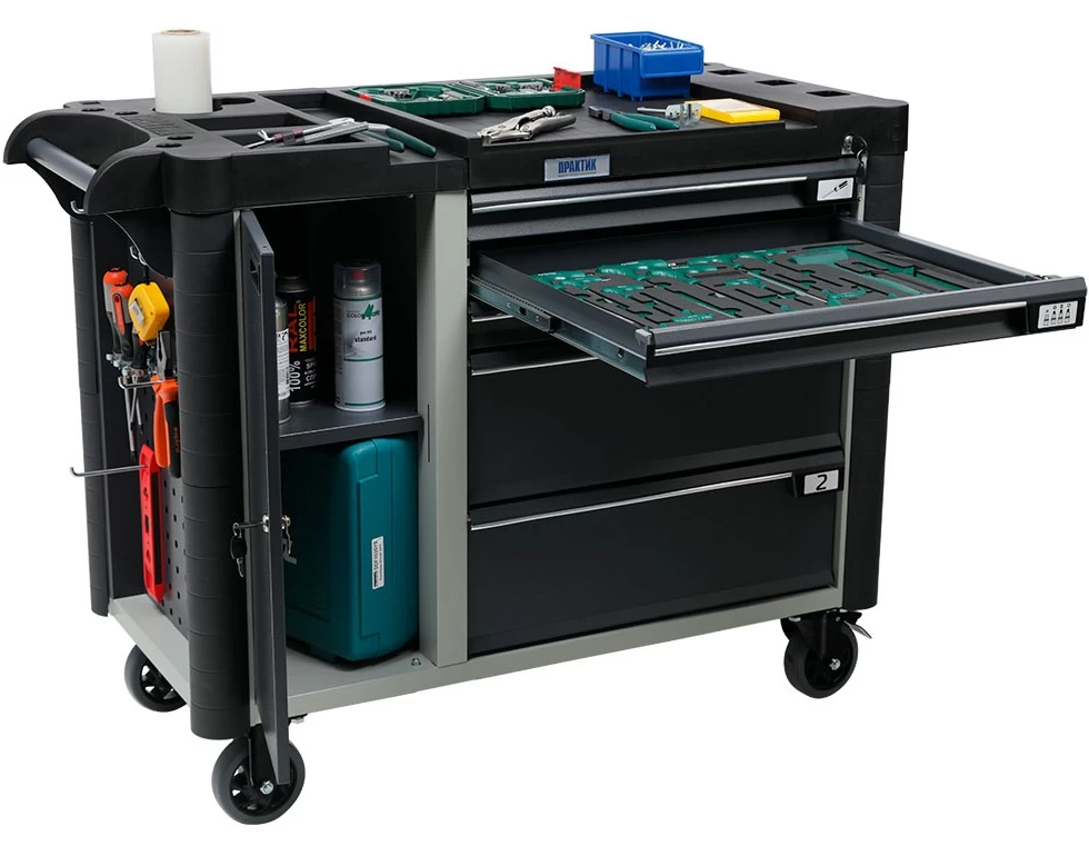Инструментальные тележки WDS new позволяют с удобством хранить и перемещать инструмент, метизы, запчасти и рабочие материалы на фабриках, заводах, в автосервисах и различных мастерских. Они производятся из высокопрочной стали и выдерживают солидную нагрузку до 180 кг.